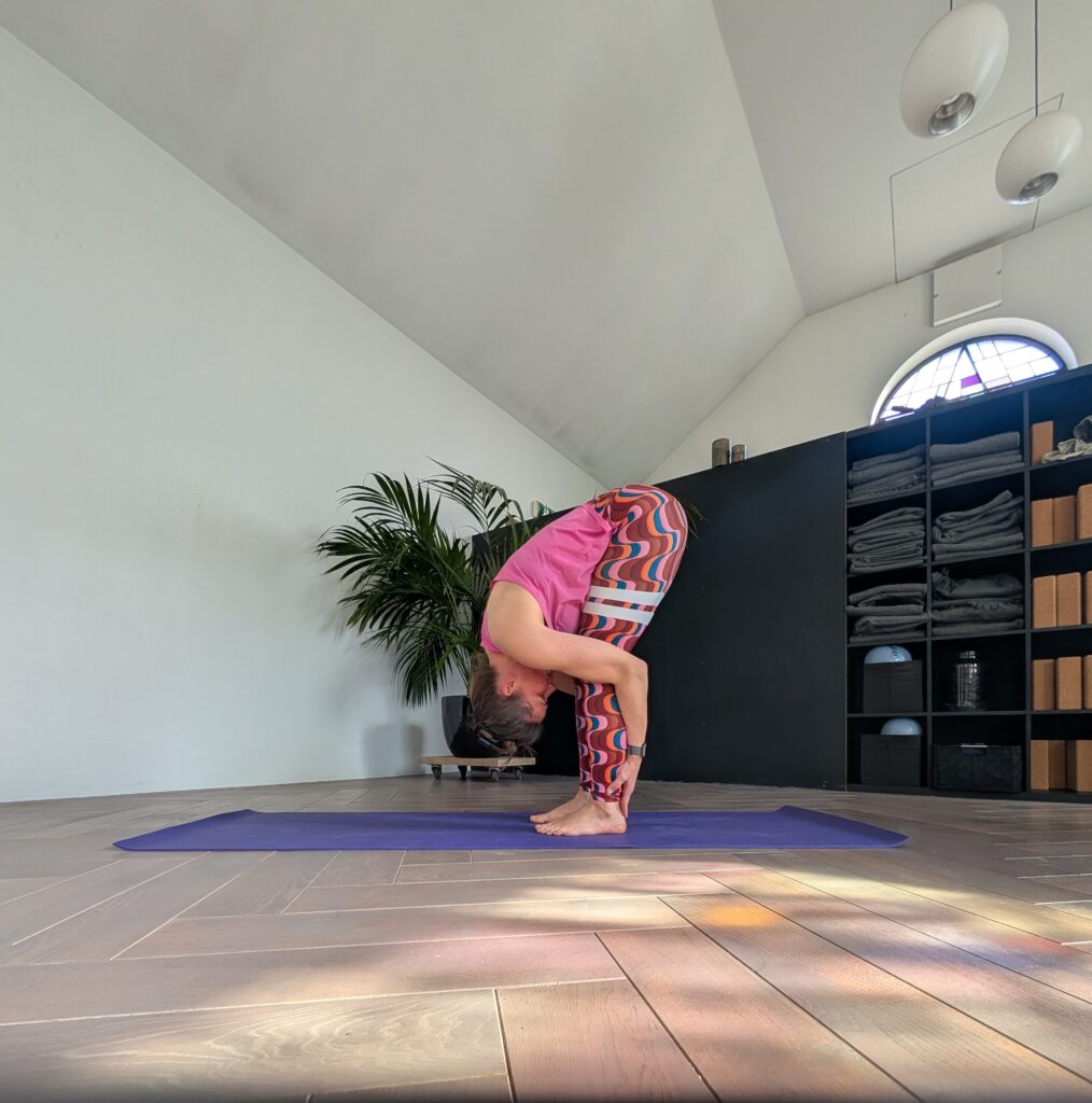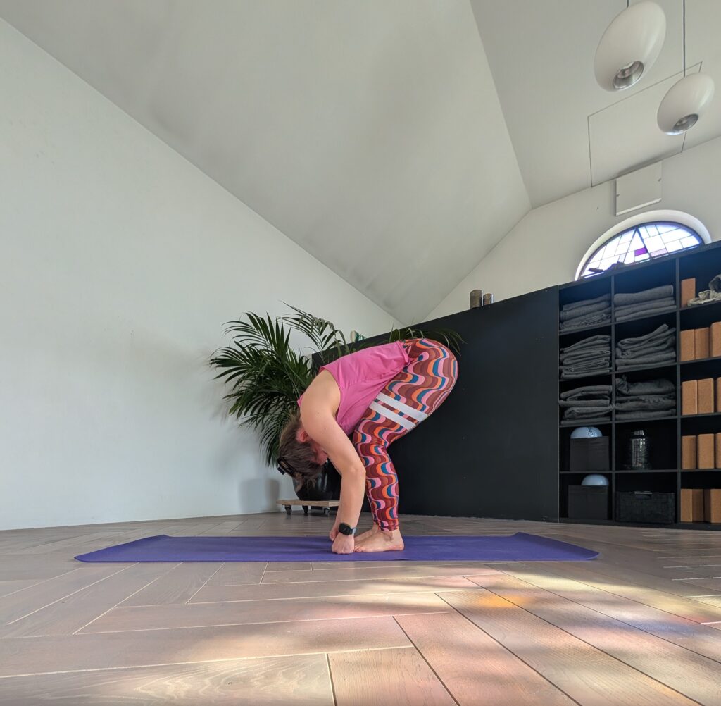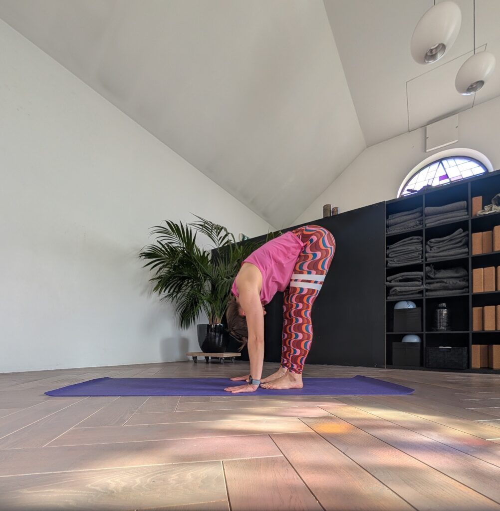 De staande vooroverbuiging oftewel Uttanasana.